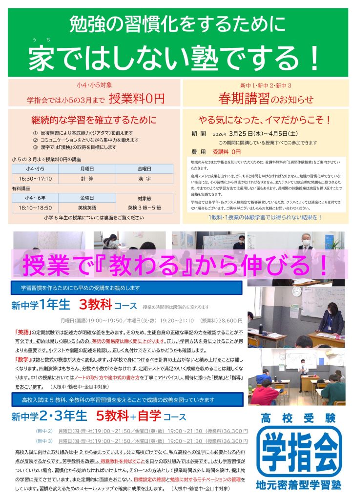 2026年度 春期講習のお知らせ