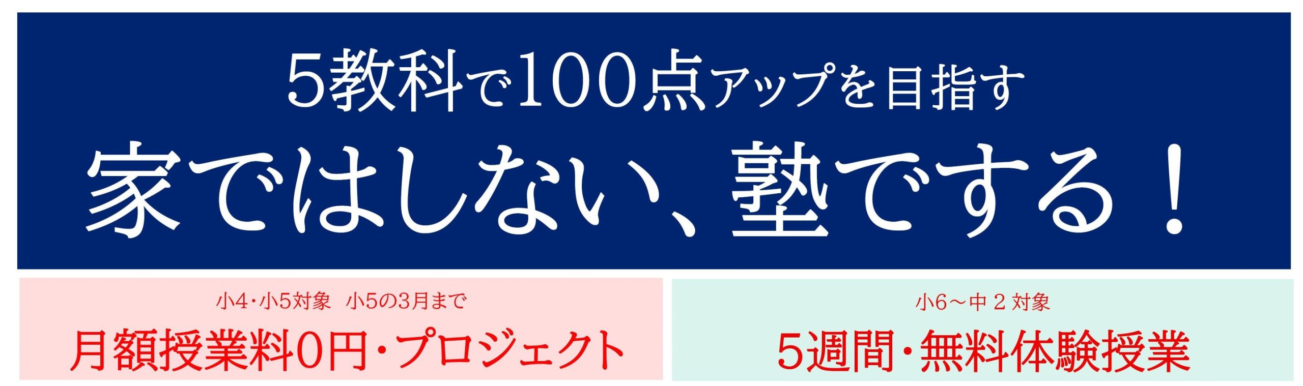 一つ目は、小4と小5の『月額授業料0円キャンペーン』、2つ目は小6から中2を対象とした『最大5週間の無料体験授業』です。
