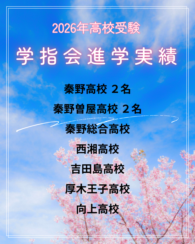 2026年2月27日(金)は神奈川県公立高校の合格発表でした。これを受けて在塾生の進学先が決まりましたので報告します。全員が第一志望に進学することはできませんでしたが、生徒たちは持っている力を出した結果だと思います。