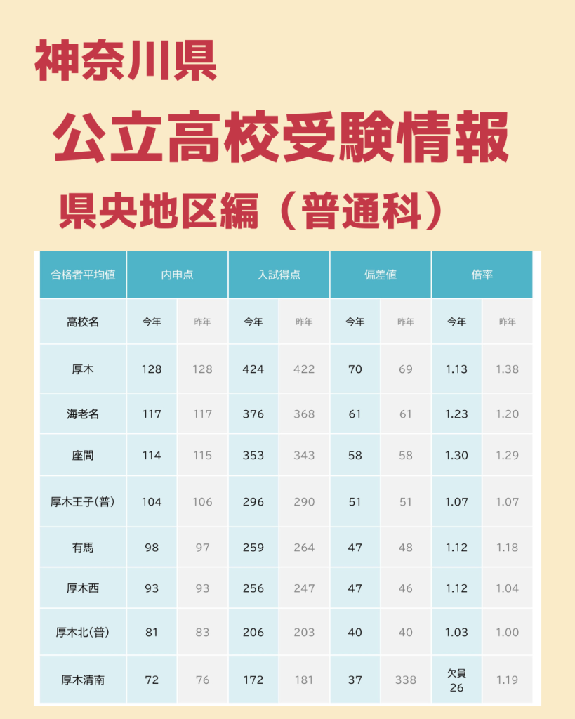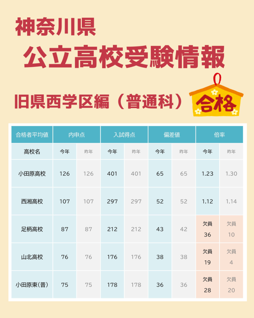 | 厚木北 | 276 | 239 | 1.15 | 247 | 239 | 1.03 | 309 | 238 | 1.30 | |